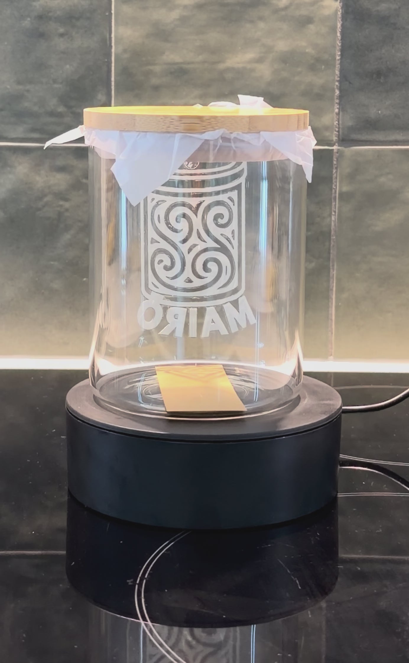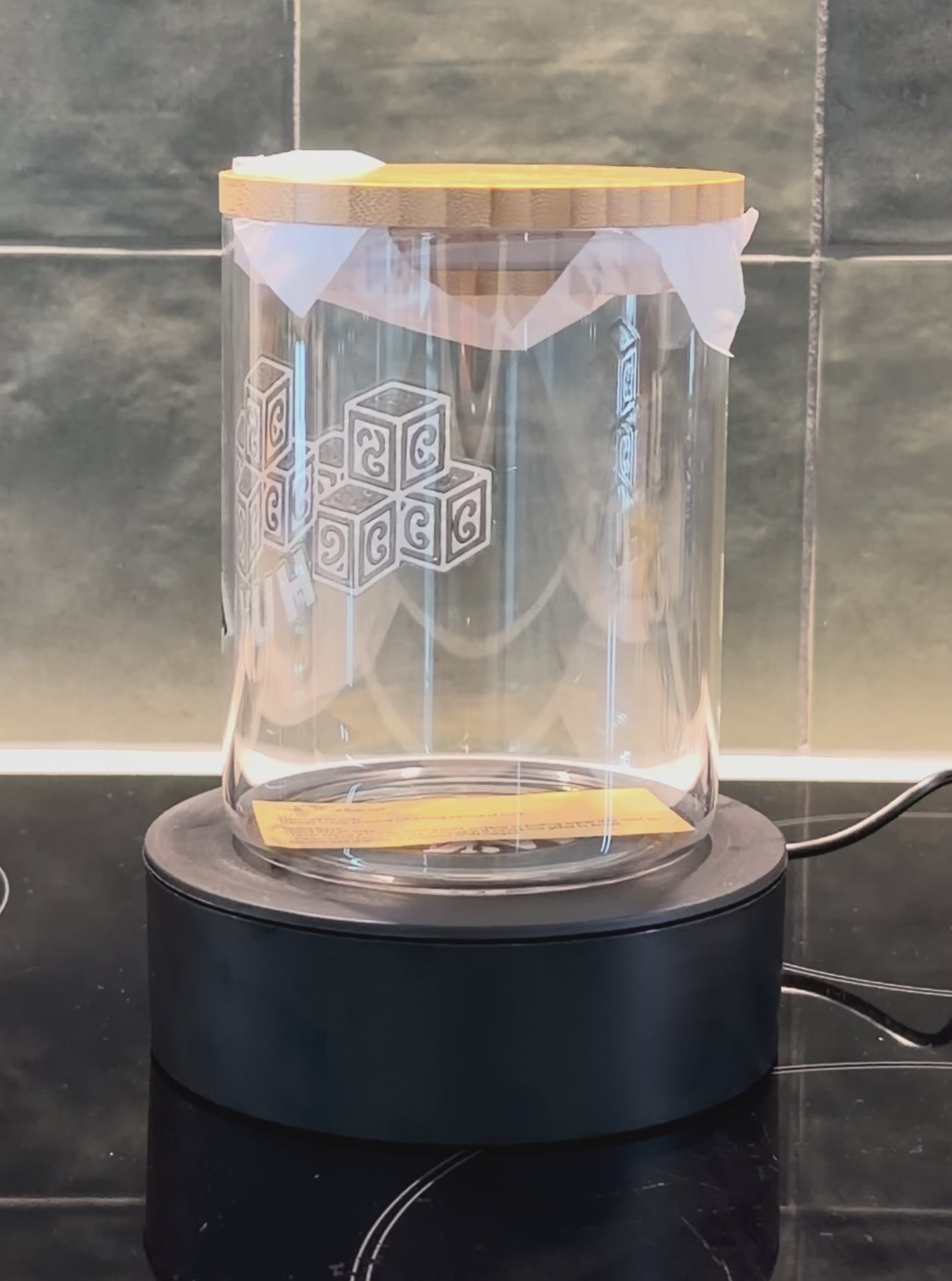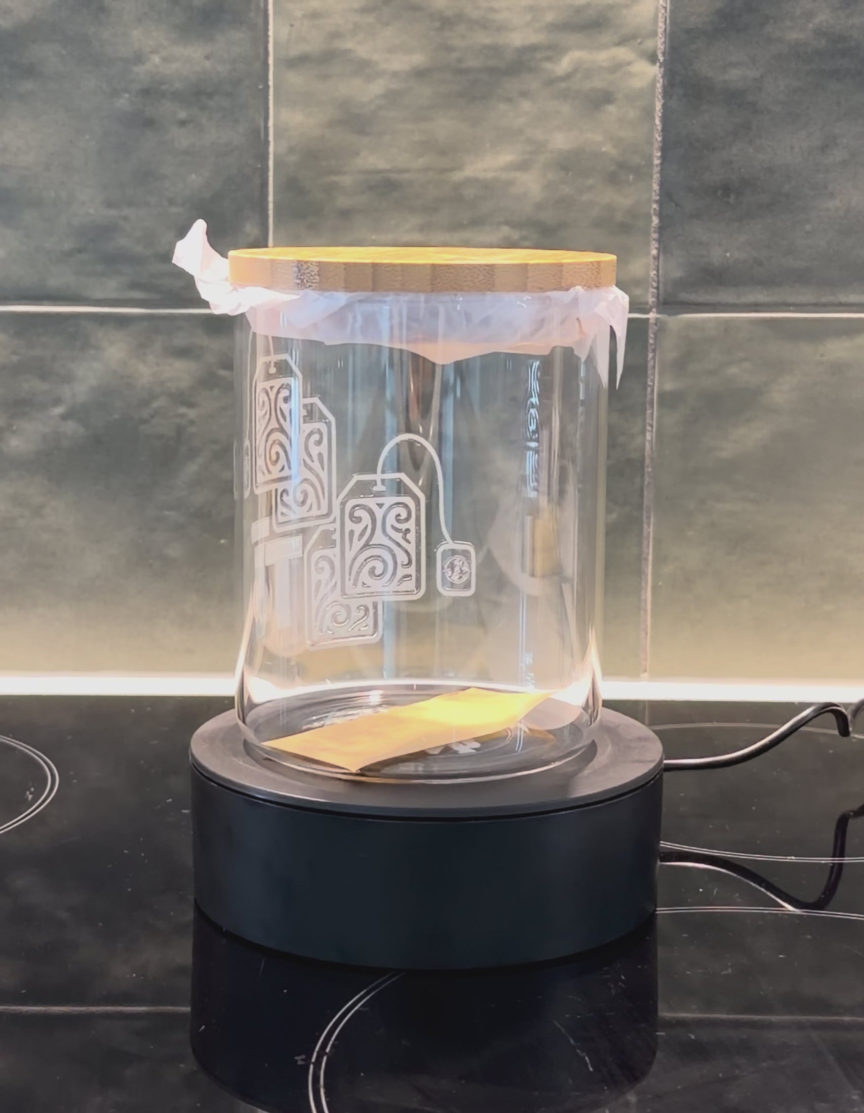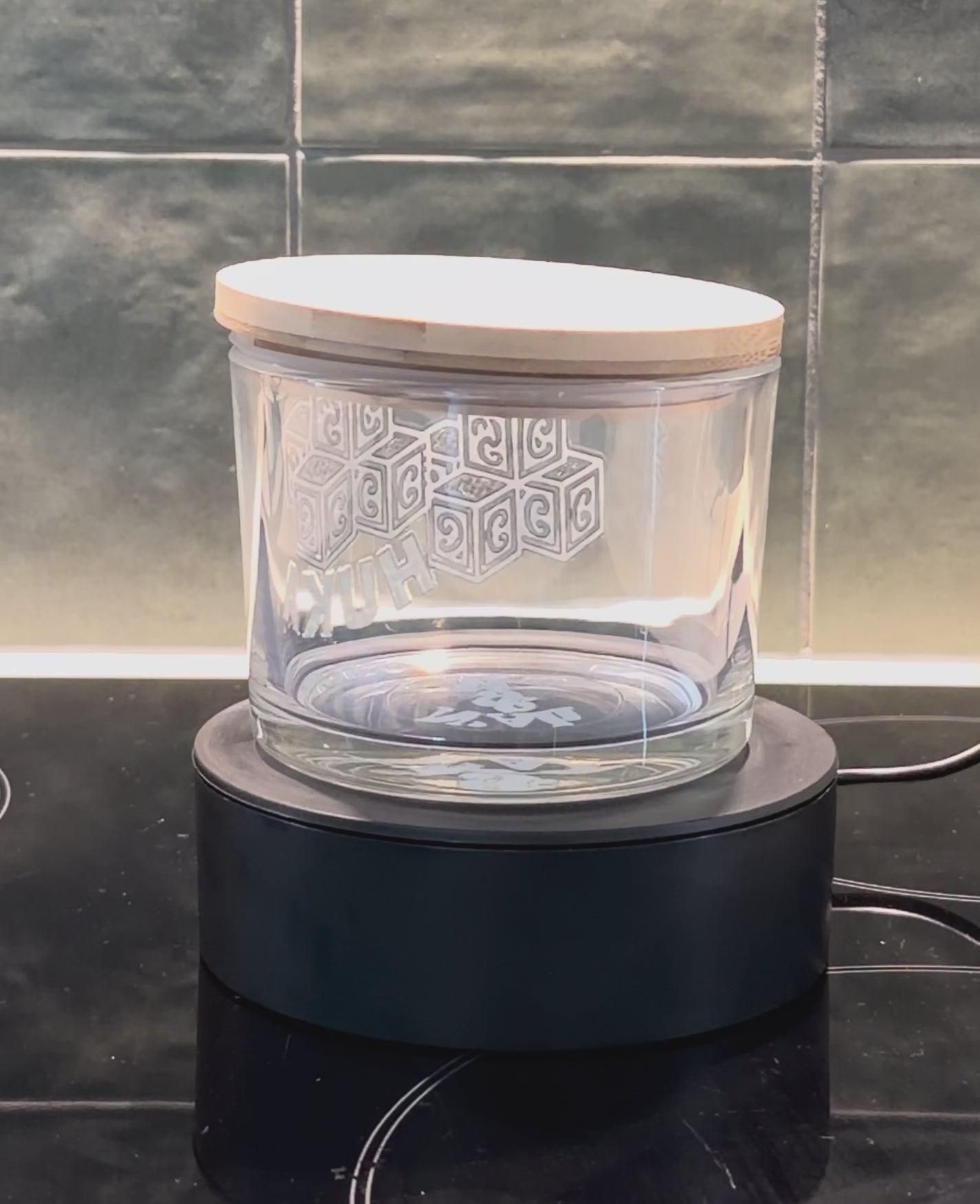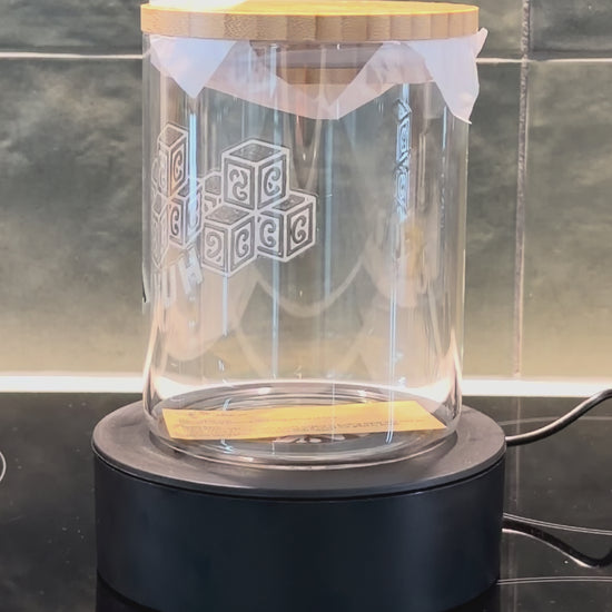 - 700ml or 500ml glass container with bamboo lid
