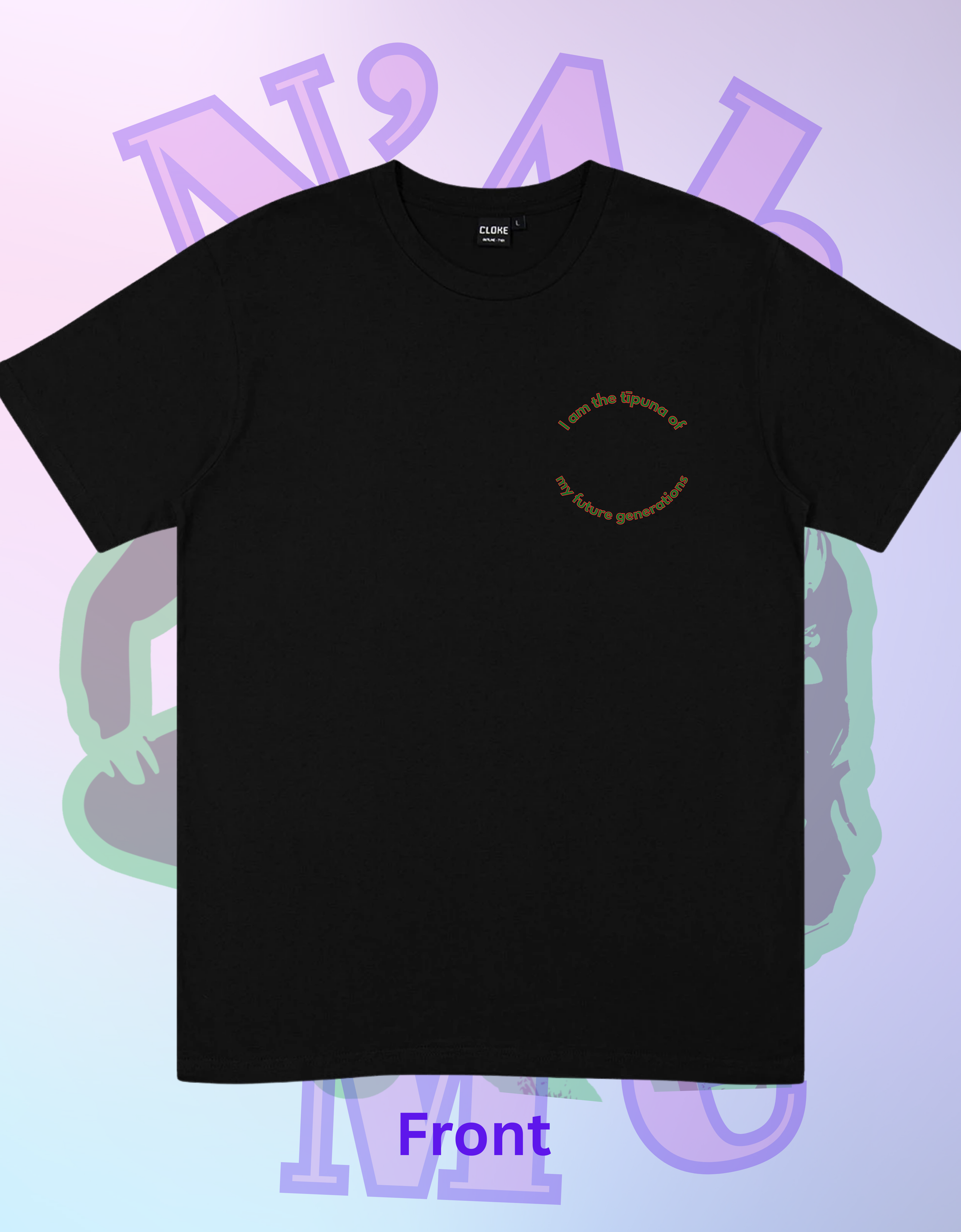 - Front: Left chest are the words 'I Am The Tīpuna Of my Future Generations'